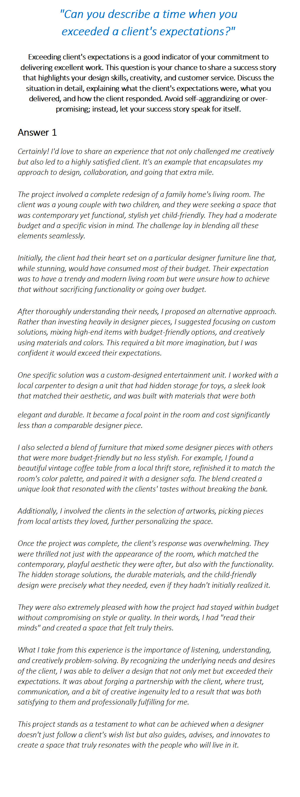 ✅ How Best to Structure Your Answers - Learn techniques to frame your answers in a way that conveys your experience and passion for interior design.