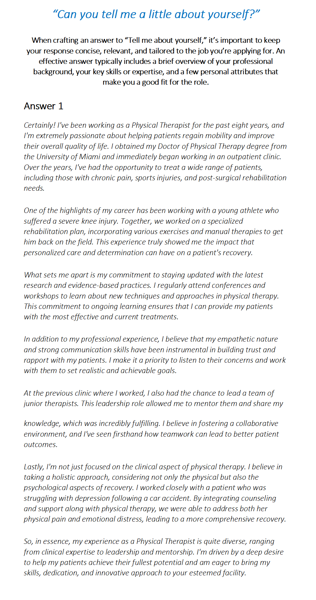 Interview Success: How To Answer Physical Therapist Interview Questions (With Over 100 Sample Answers)